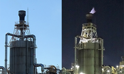 By-product gas is partially burned to cope with pressure fluctuations in power generation equipment.