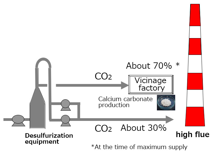 CO2 generated during the production of carbon black is supplied to nearby factories and used as a raw material for the production of calcium carbonate. We contributing to the reduction of CO2 emissions.